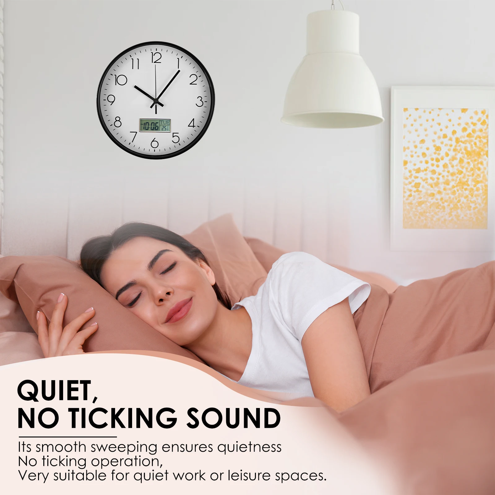 [Easy to Read and Noiseless] This clock uses a classic color background combined with numerical markers for high light transmission. It works smoothly and without ticking noise, perfect for placing in a quiet work or leisure space.