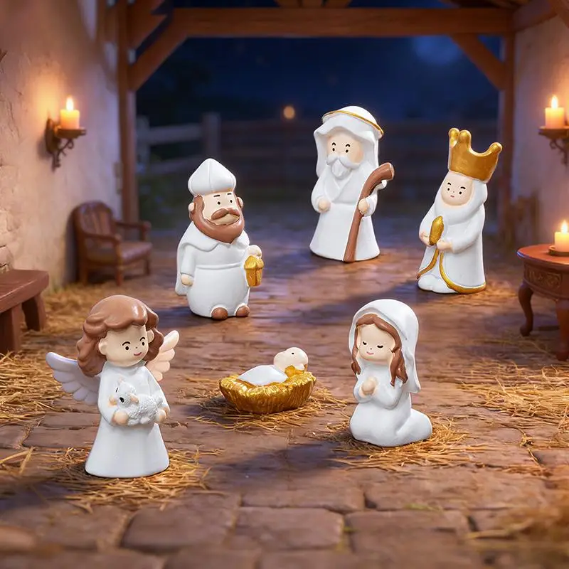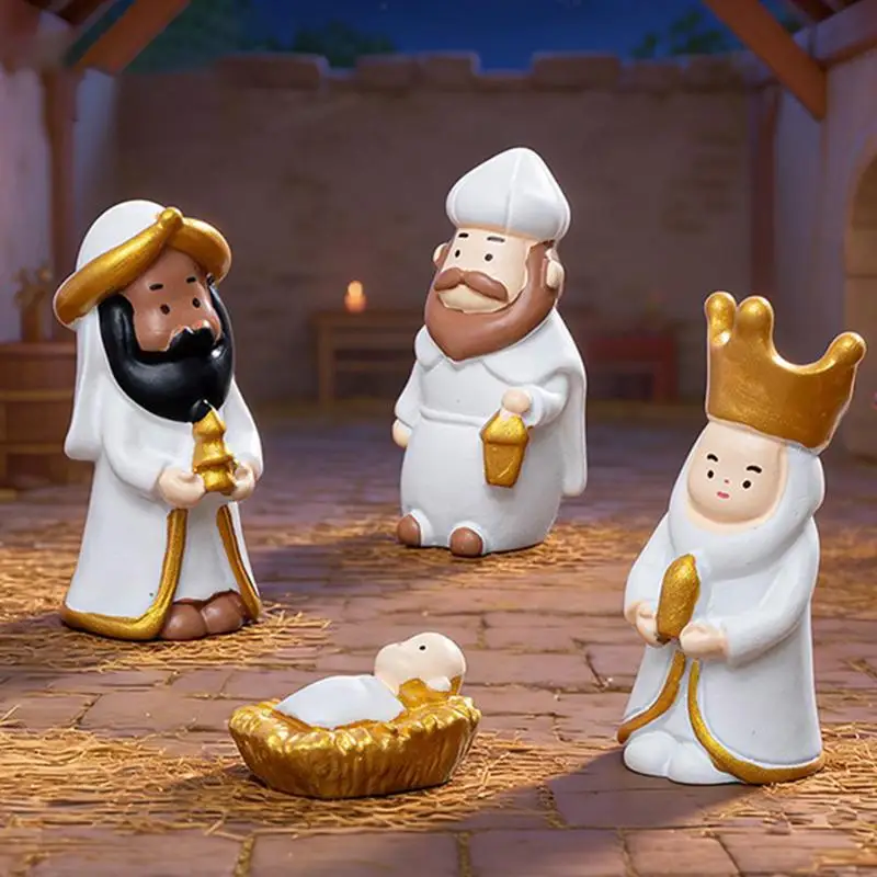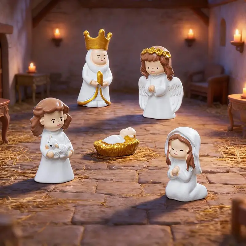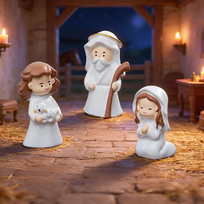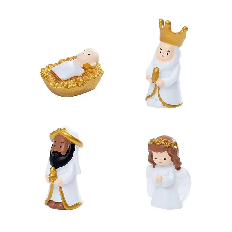 Cartoon Hand Painted Sacred Family Resin Figurines Mini Dollhouse Decor Miniature Desktop Ornaments