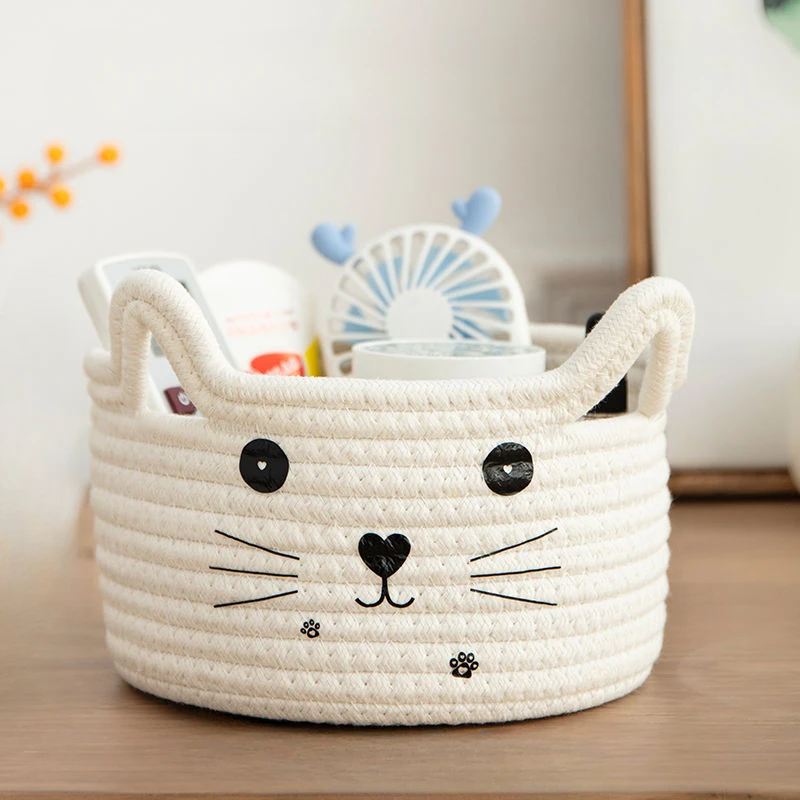 Cute Storage Baskets Cotton Woven Bedroom Household Decor Organizer Case Key Snacks Desktop Sundries Deposit Tidy Box Items Home