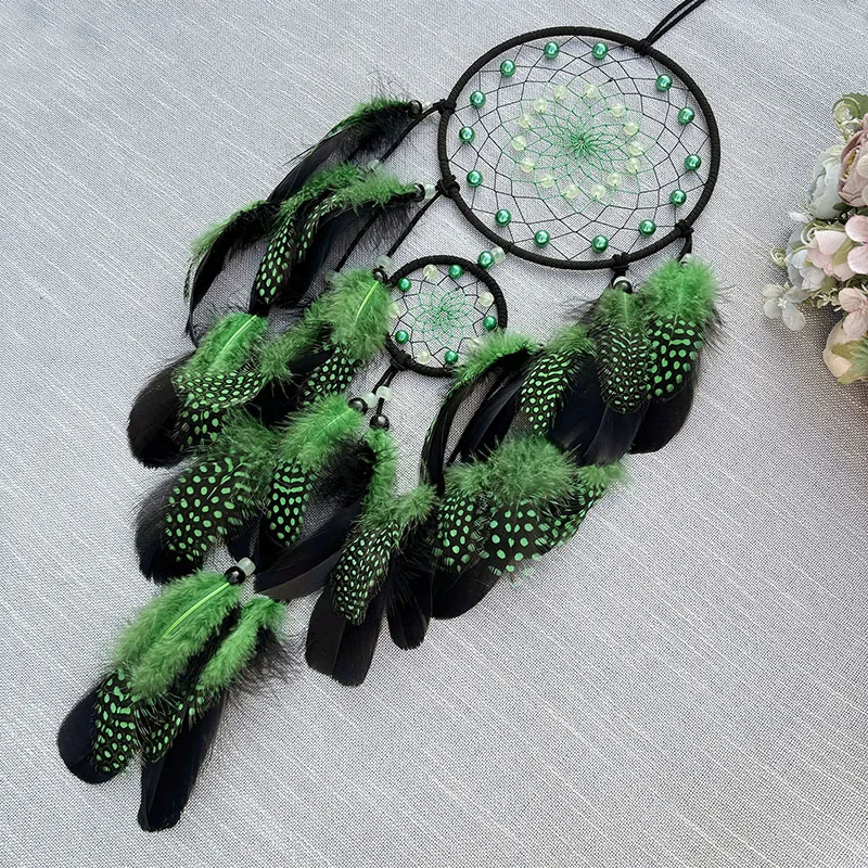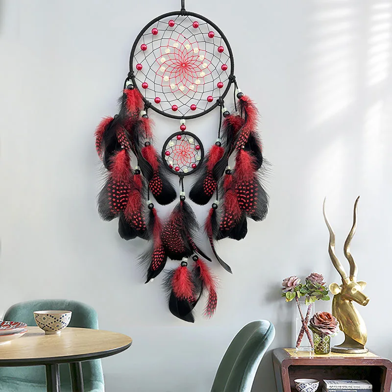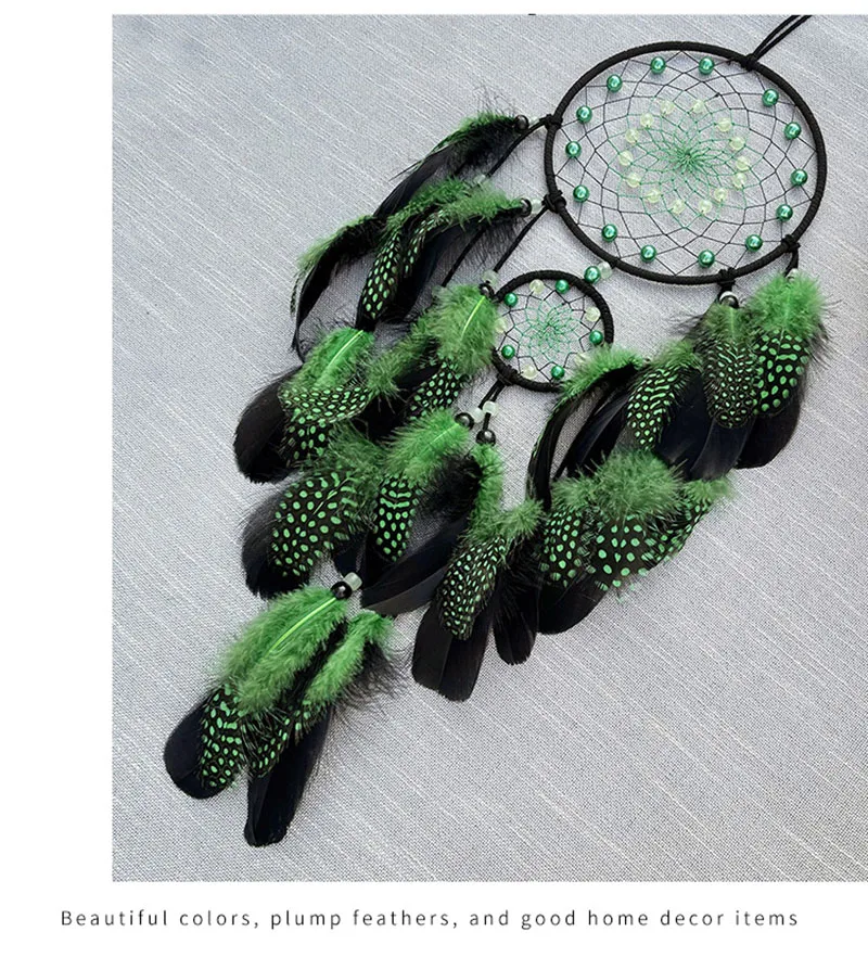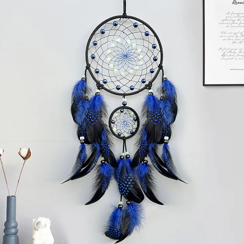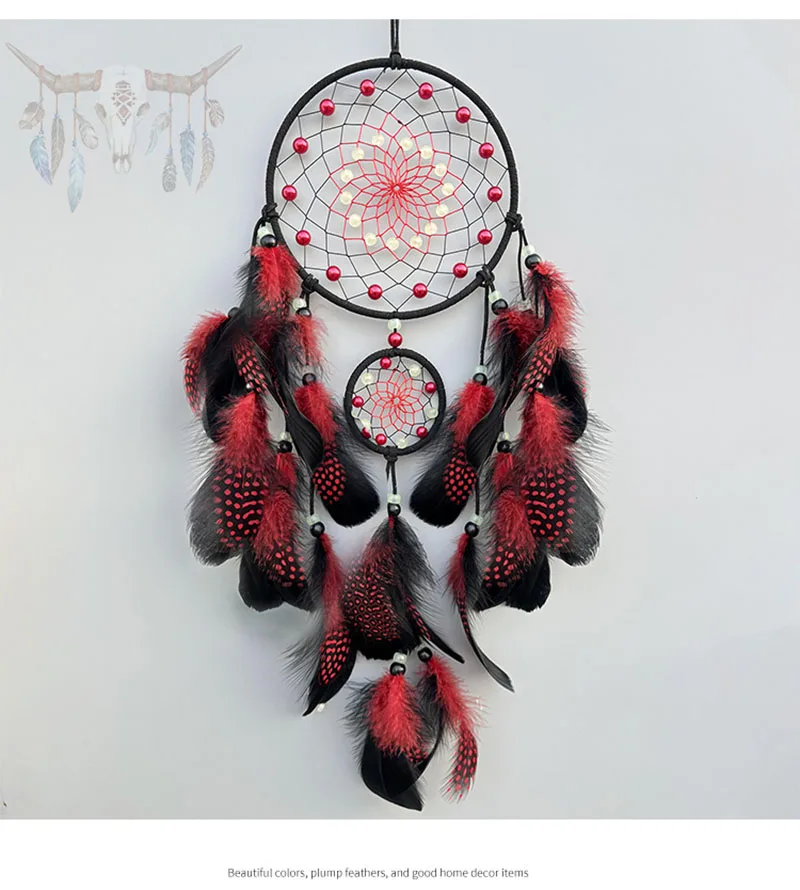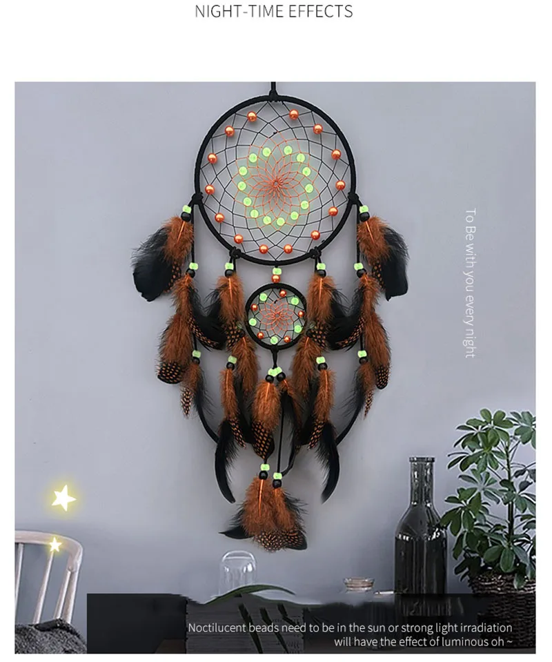 Dream Catcher With Luminous Beads Hand-woven Colorful Feathers Wind Chimes Living Room Bedroom Hanging Ornaments Wall Decoration