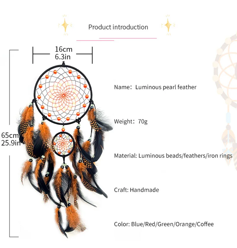 Be the first to review “Dream Catcher With Luminous Beads Hand-woven Colorful Feathers Wind Chimes Living Room Bedroom Hanging Ornaments Wall Decoration” Cancel reply