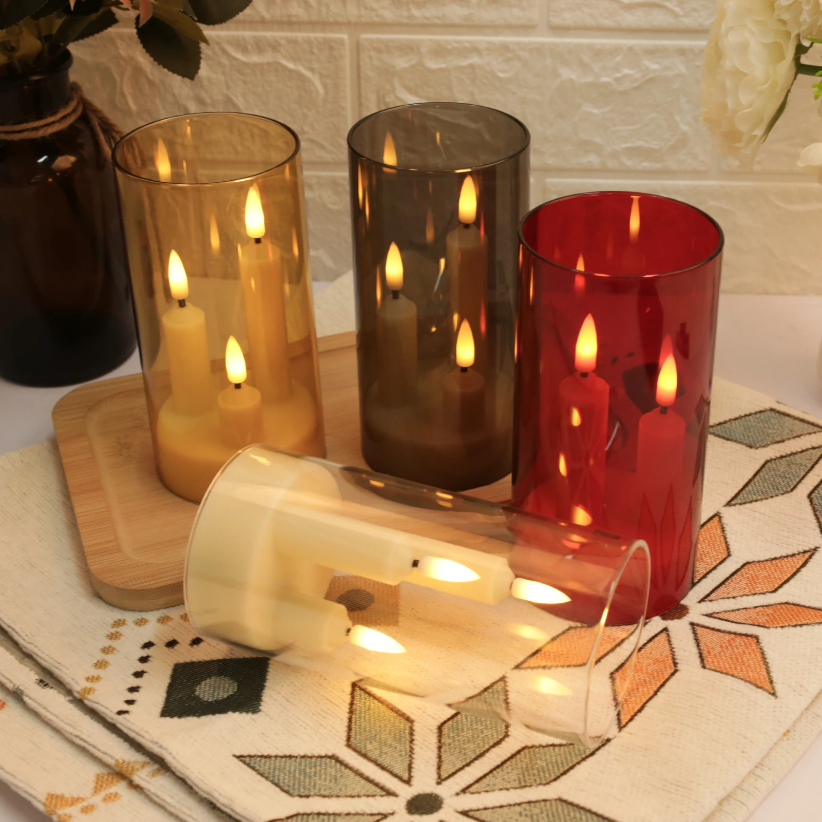 Flameless 3 in 1 LED Taper Candles with 15CM Lampshade Battery Operated Flickering Electric Window Candles for Christmas Wedding