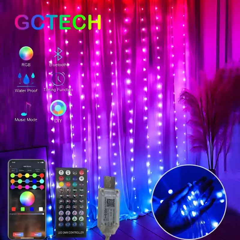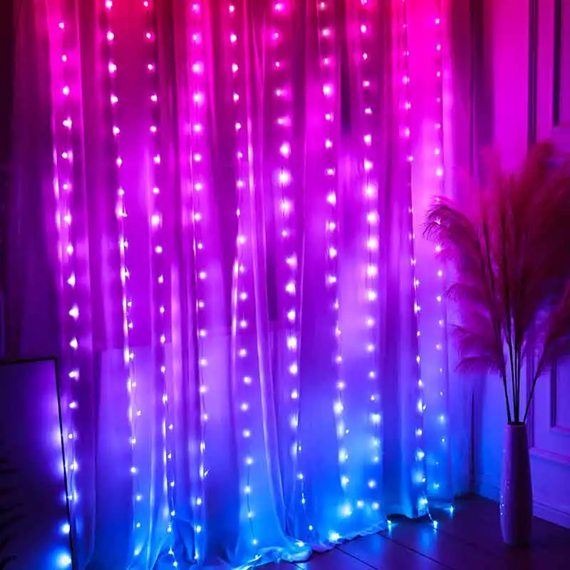 LED Curtain Lights Fairy String Lights Festival Lighting Rainbow Window Lamp Home Bedroom Christmas Decoration App Control DIY