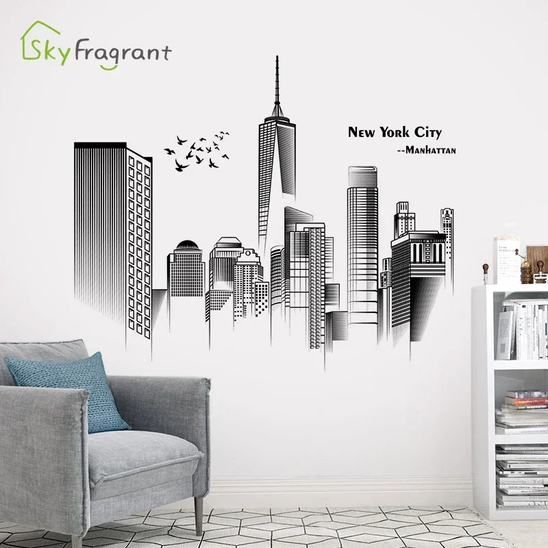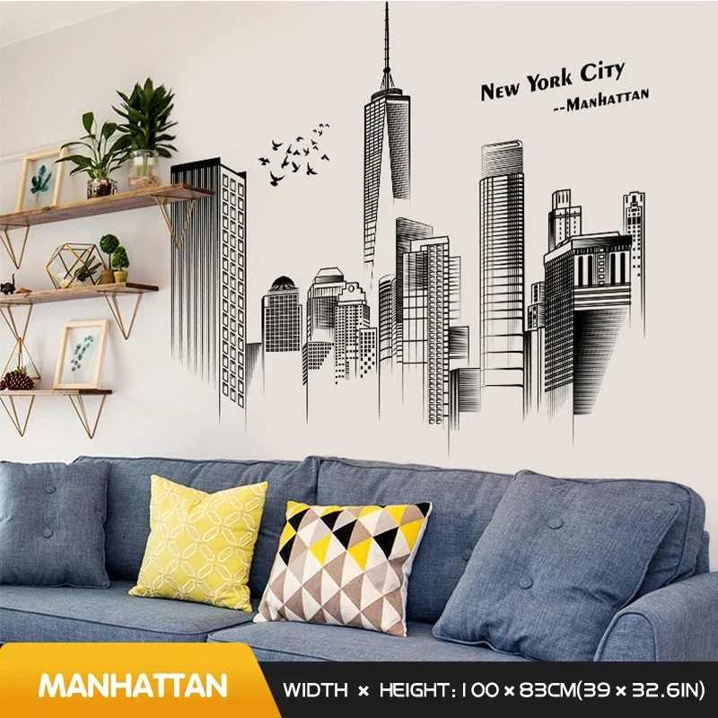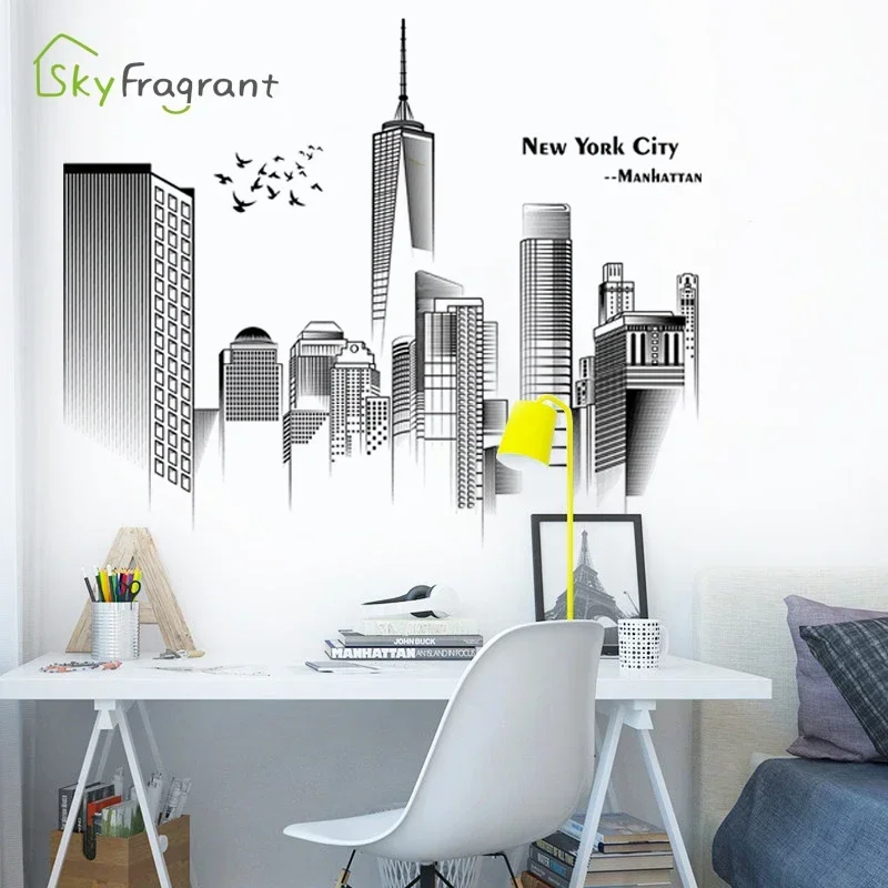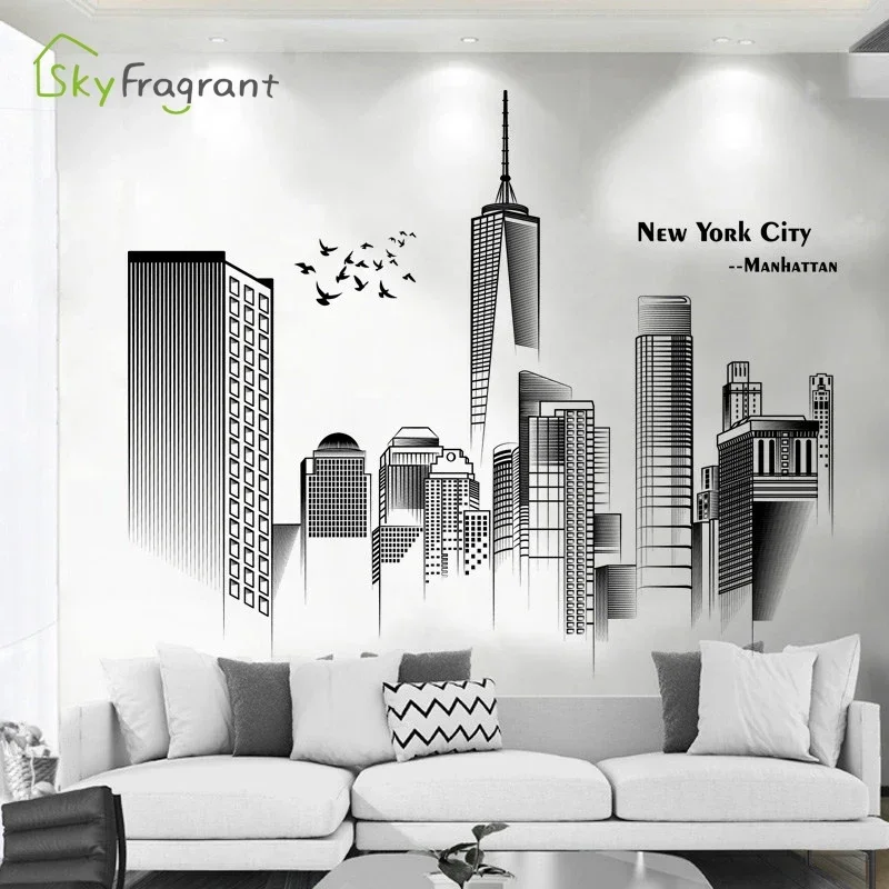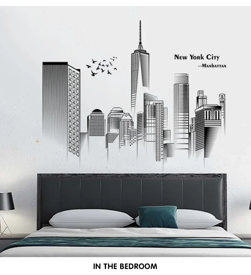 Manhattan Wall Sticker Creative Bedroom Decor Home Black And White Art Stickers Living Room Background Wall Decor Self-adhesive