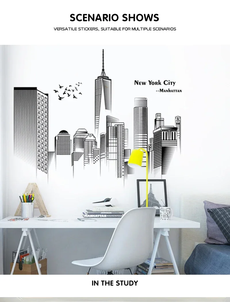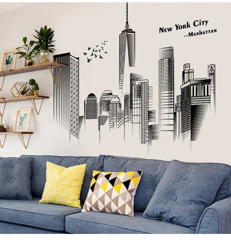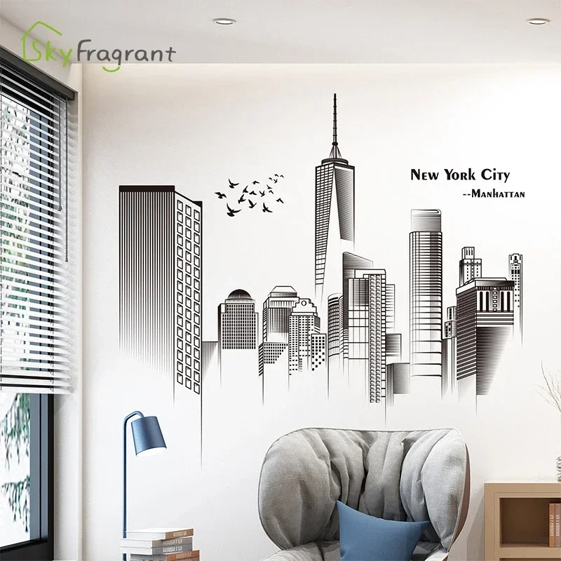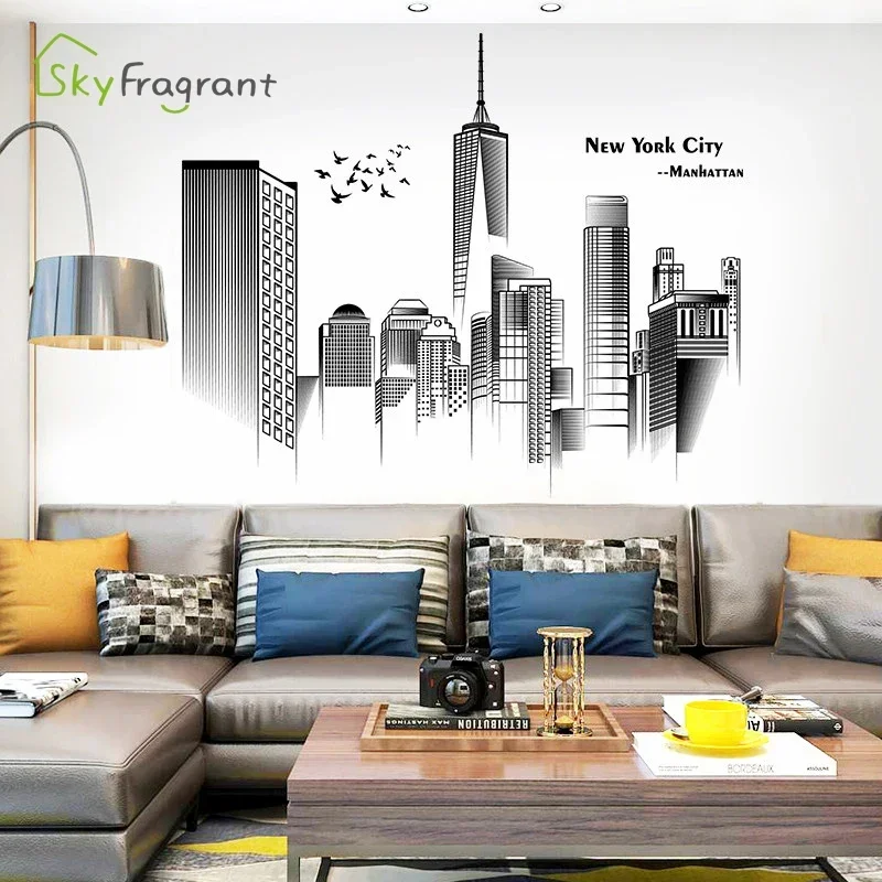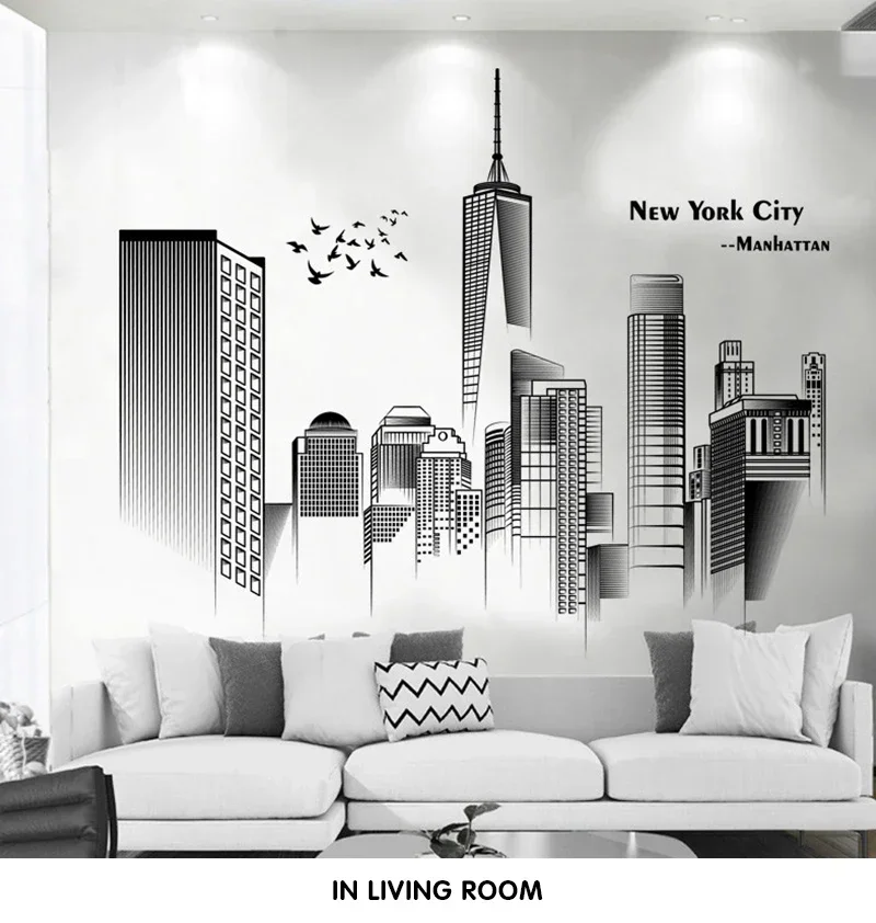 Manhattan Wall Sticker Creative Bedroom Decor Home Black And White Art Stickers Living Room Background Wall Decor Self-adhesive