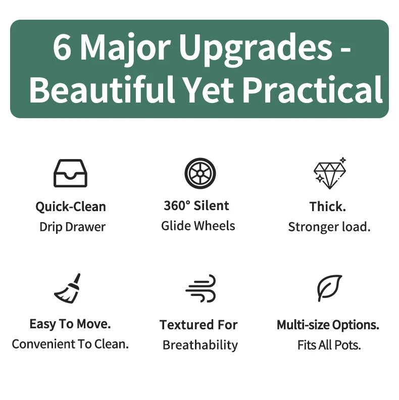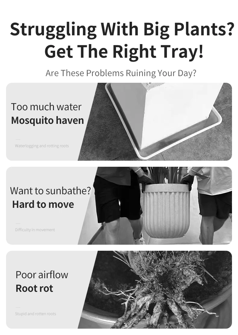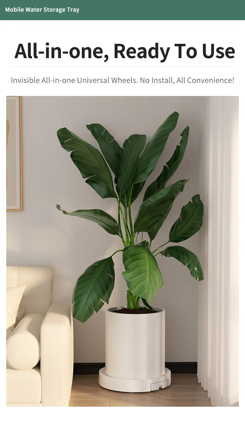 Mobile Planter Tray, Modern Style, Silent Casters, Thickened & Reinforced, Hidden Design, High Load-Bearing Plant Saucer