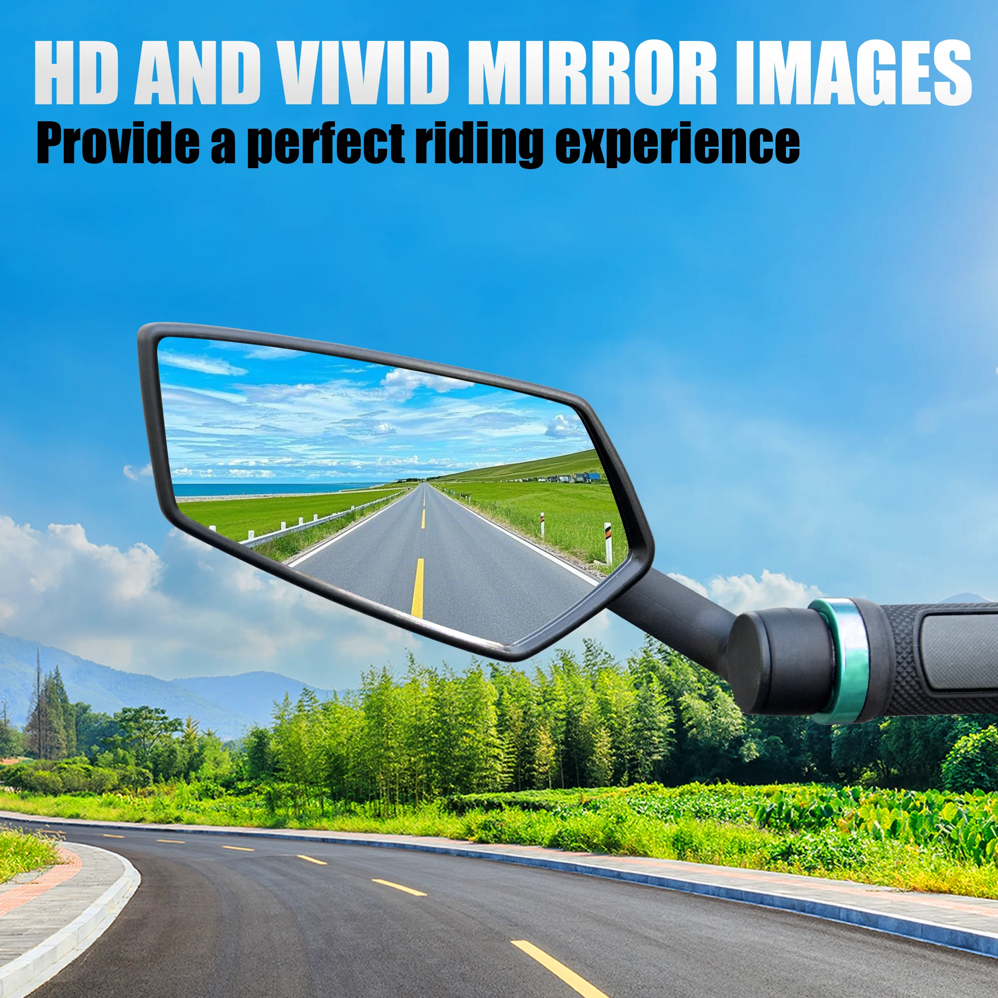Wide Angle Rearview: The bike mirror designed with automotive-grade ultra clear glass mirror,effectively expand your vision to grasp rear road conditions.