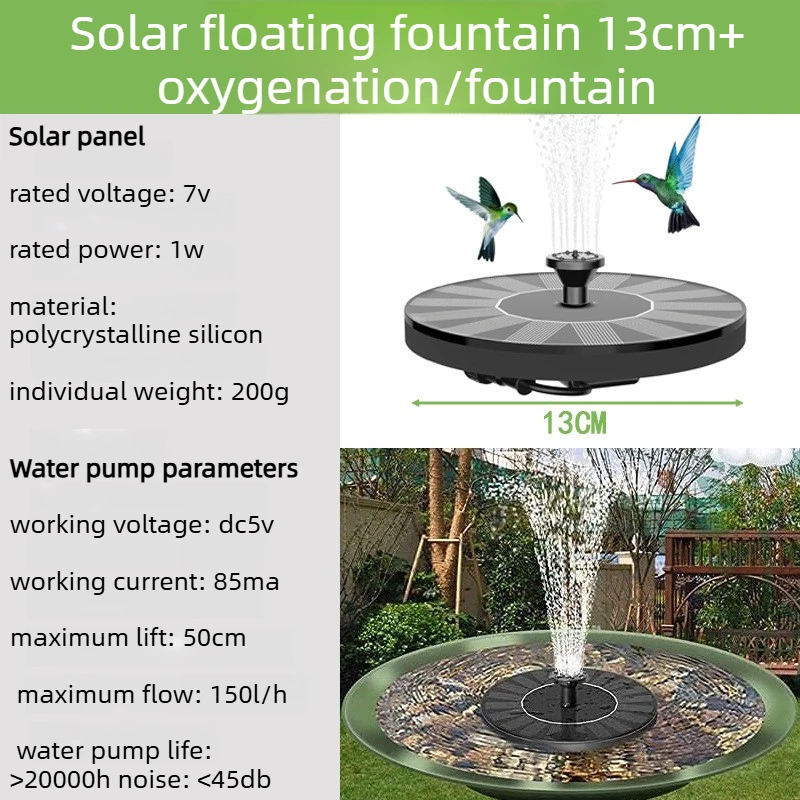 MULTI-SITUATION USE: This lightweight solar powered fountain measures is 6.3 inches in diameter and is perfect for bird baths, fish tanks, ponds, swimming pools, gardens and outdoor use. This fountain will attract a large number of hummingbirds to play and drink, which is very interesting.