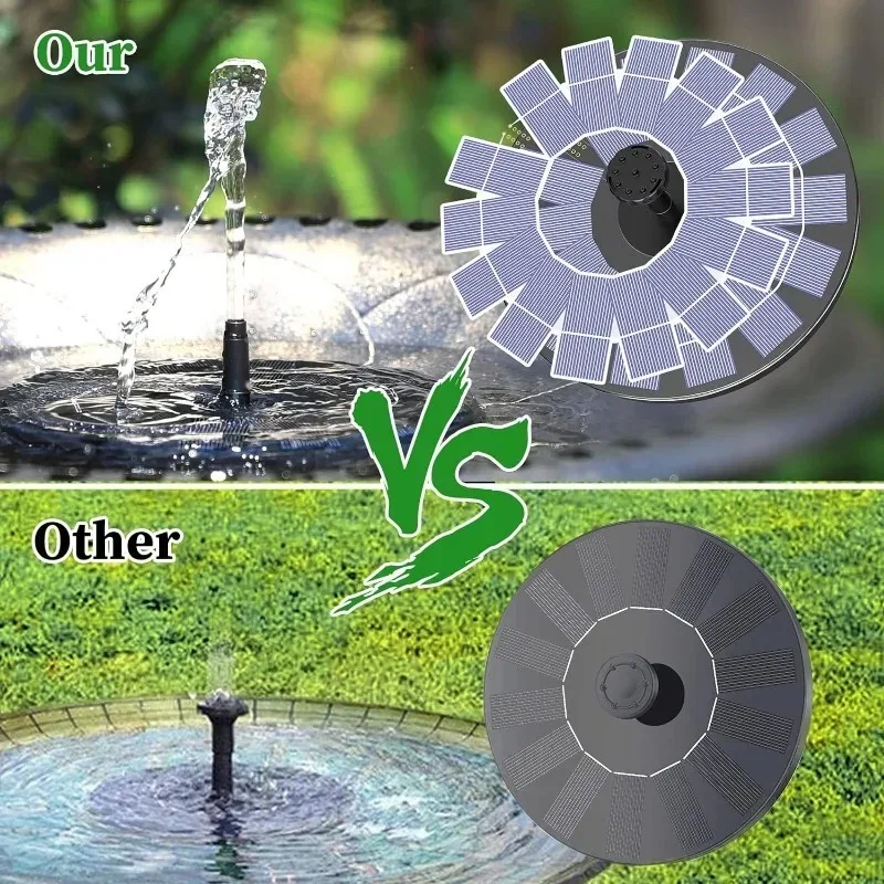 Solar Fountain Pump Outdoor Bird Bath Water Fountain with 6 Nozzles for Courtyard Garden Pool Pond Water Feature