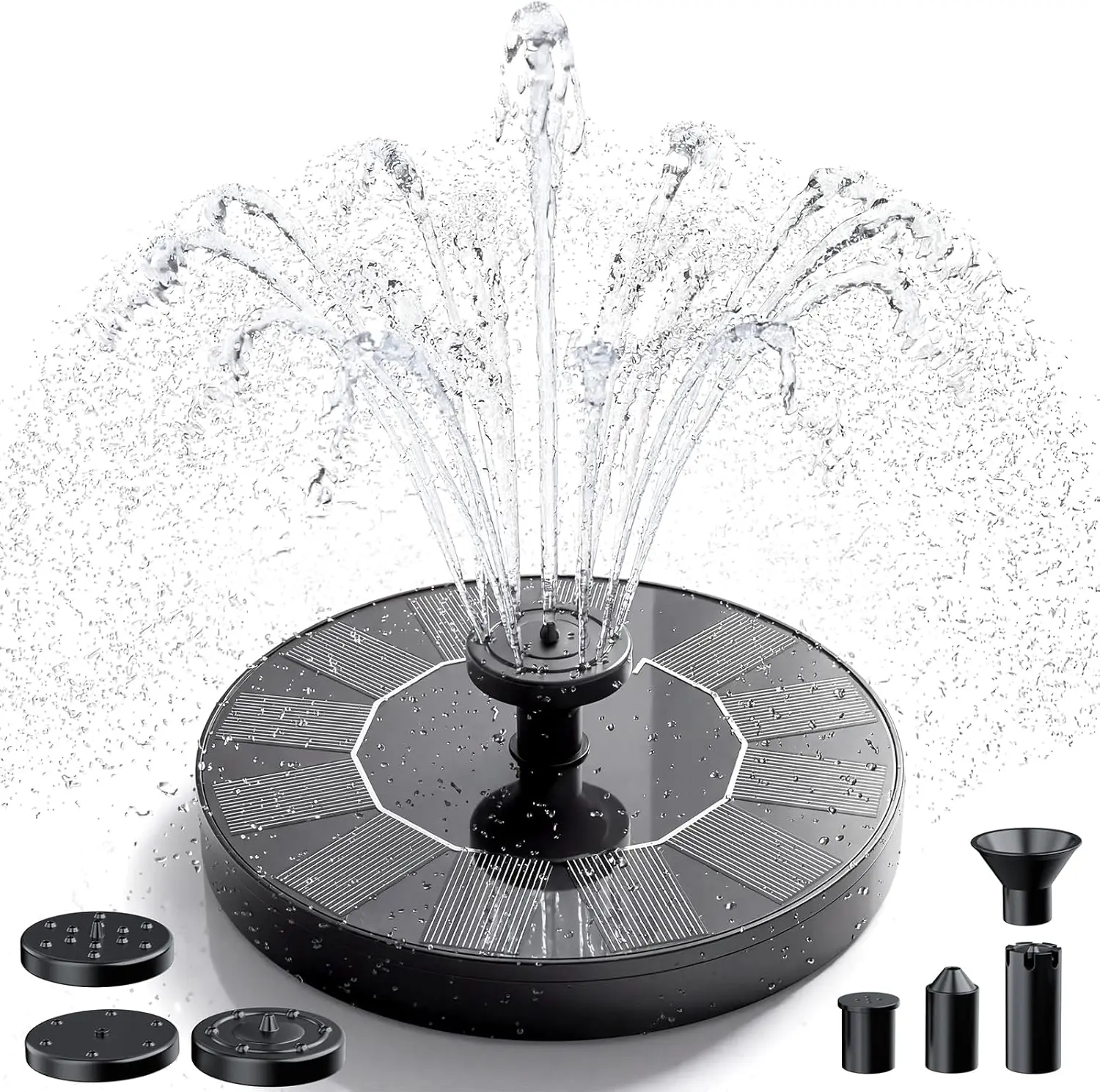 6 SPRAY MODES: We have equipped for each set of bird bath fountains with 6 nozzle parts, you can freely DIY and change the nozzles according to your own preferences, creating different spray scenes, injecting vitality and beauty into your yard, adding endless fun!