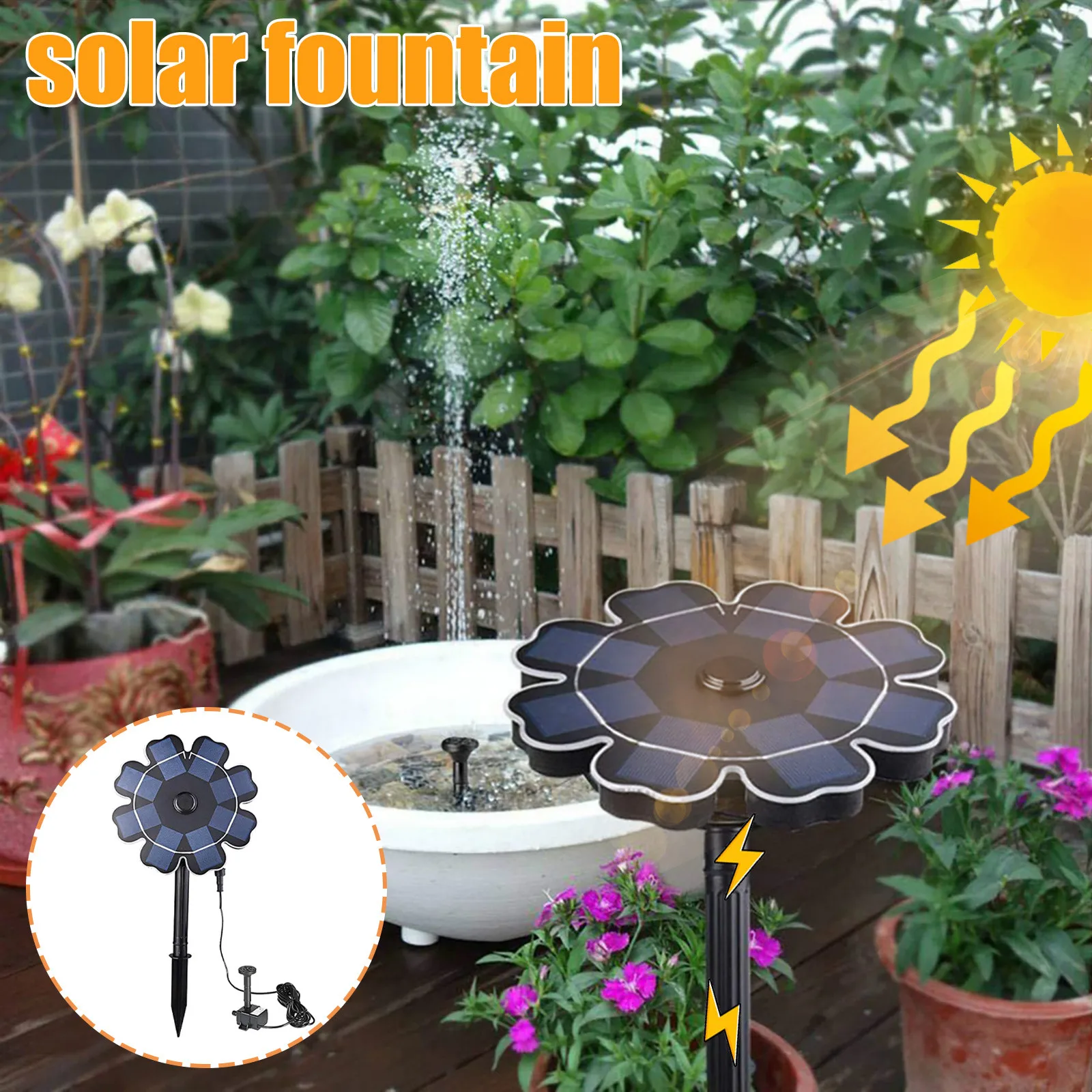 Solar-powered Water Fountain Ground-insertion Fountain Floating Fountain Petal-shaped Fountain Garden Decoration