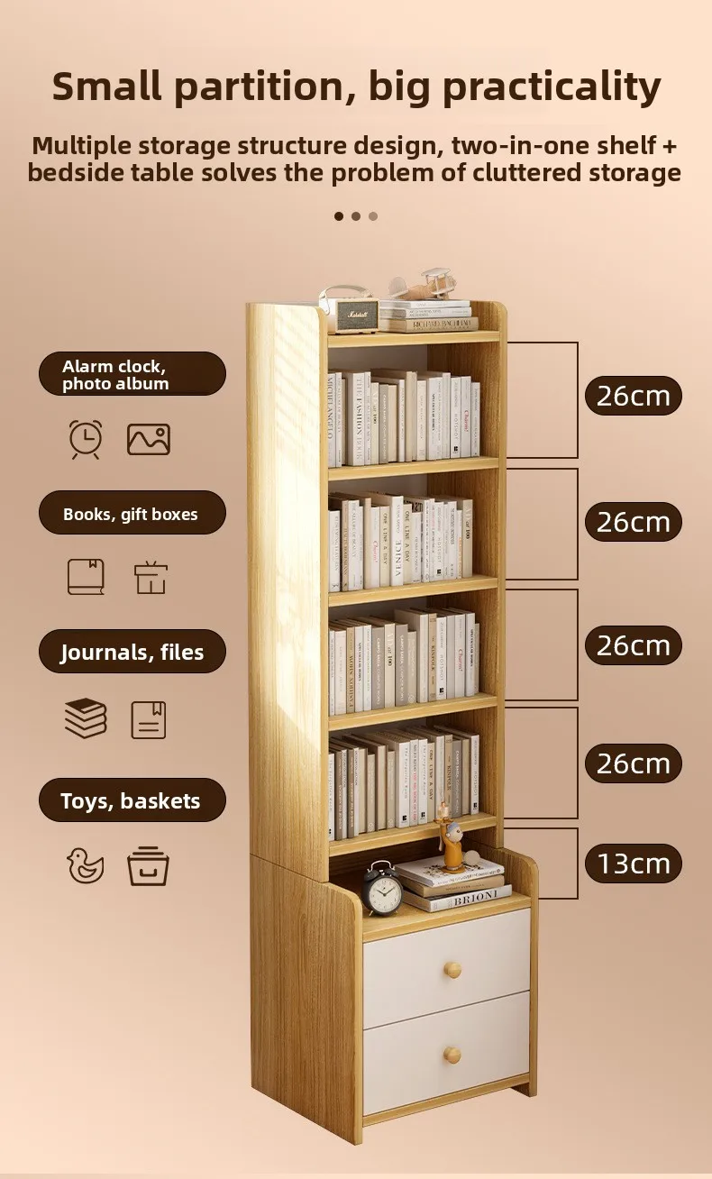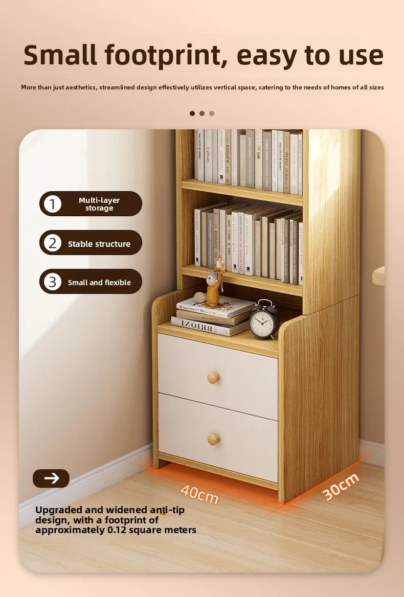 Stable Bookshelf Floor-to-ceiling shelf Household simple wall multi-layer with pumping storage locker Bedroom bedside cabinet