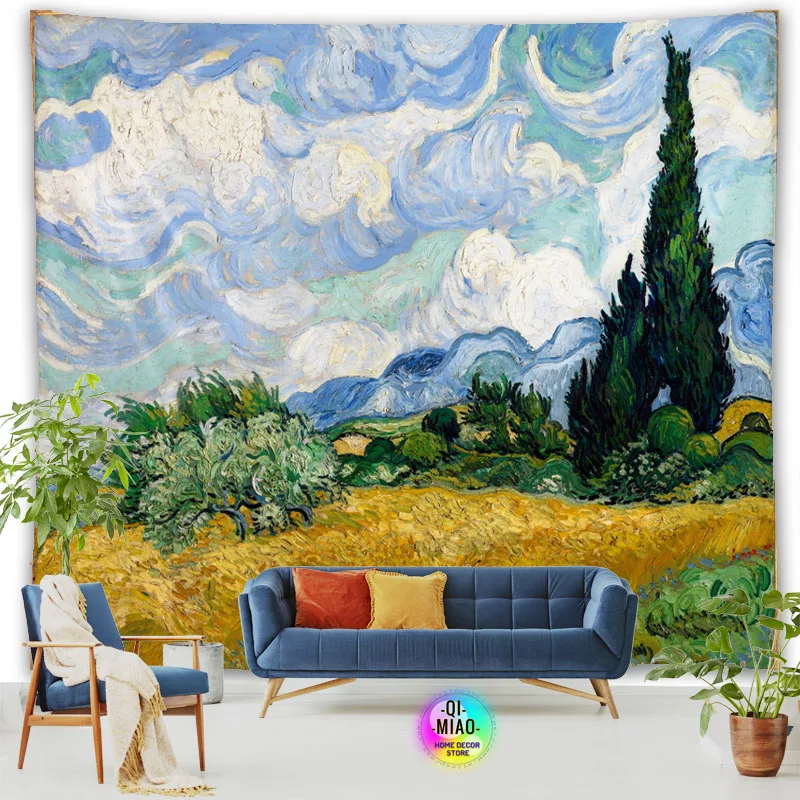 Tapestry World Famous Painting Van Gogh Tapestries Printed Wall Hanging Rural Landscape Home Decoration Bedroom Decor Wall Ar