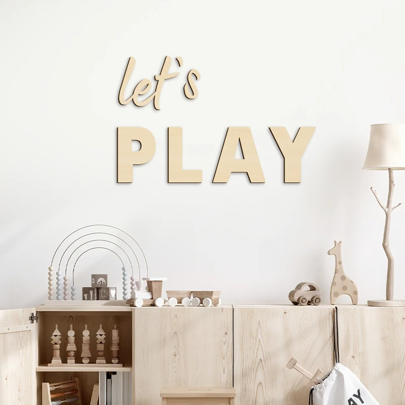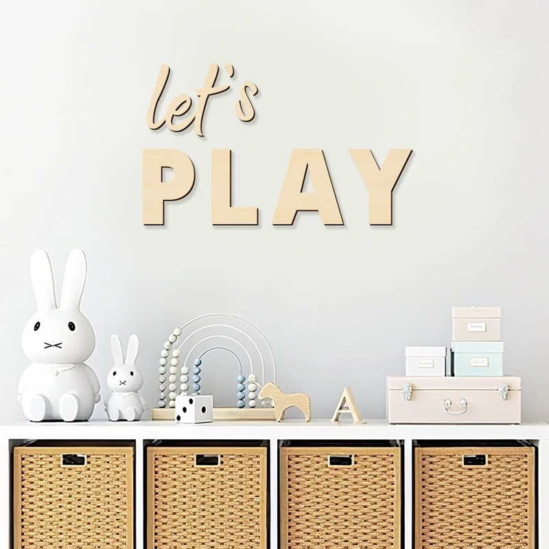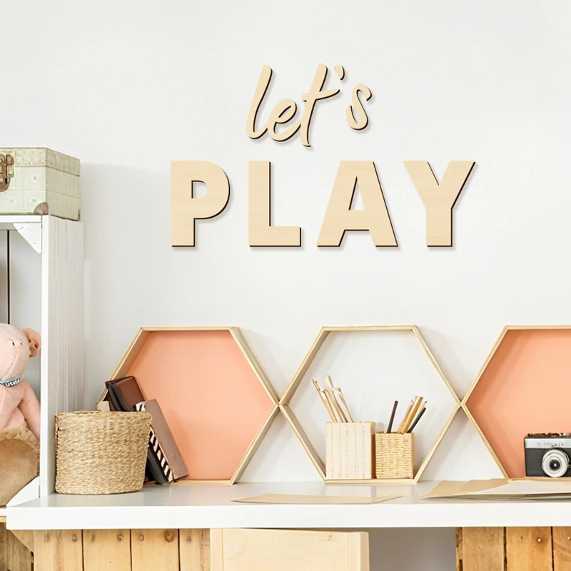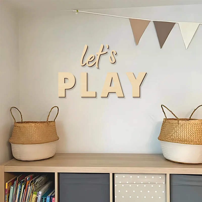 Wall Sign for Kid’s Play Wooden Let’s Play Wall Stickers Suitable for Children’s Playrooms Nursery Room Bedroom Wall Decorations